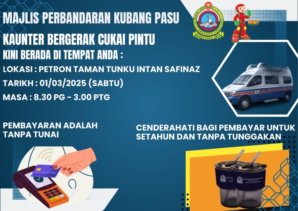 Kaunter bergerak bagi pembayaran Cukai Pintu akan diadakan pada:-