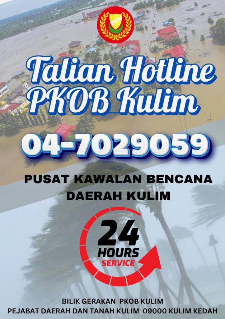 Talian Hotline Pusat Kawalan Operasi Bencana (PKOB) Daerah Kulim kini beroperasi 24 jam. Sila hubungi nombor telefon yang tertera jika terdapat sebarang aduan, pertanyaan dan bantuan kecemasan.