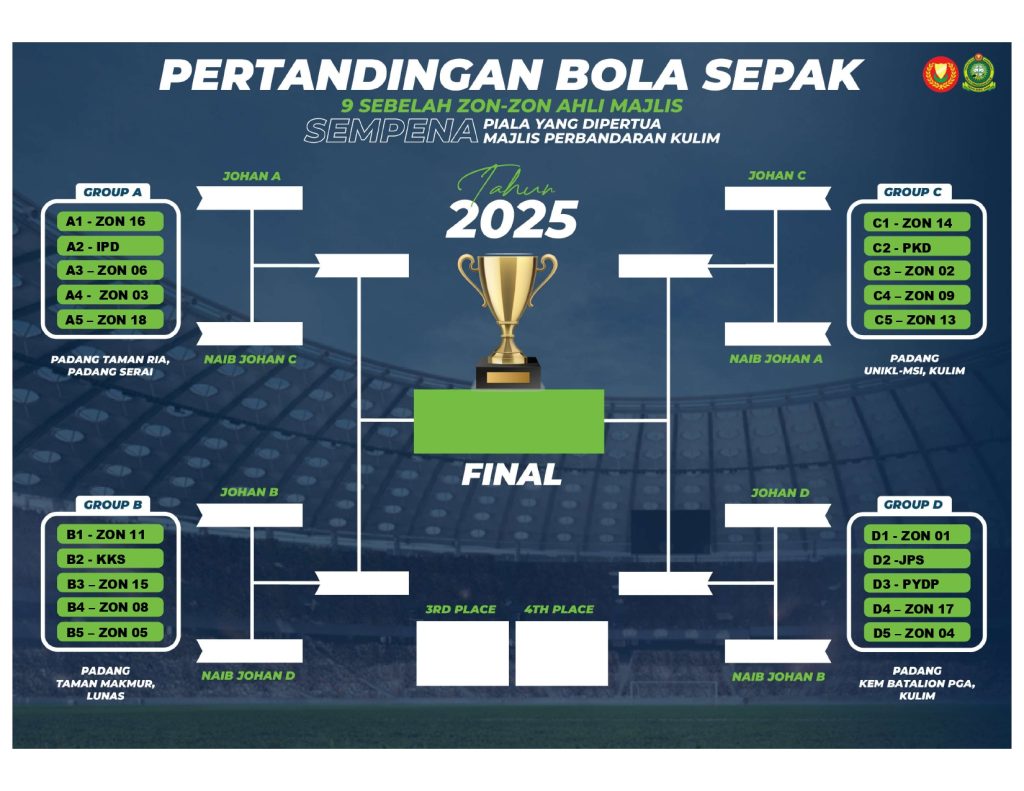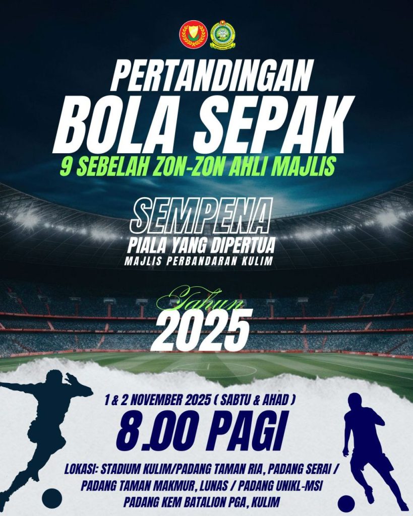 Majlis Perbandaran Kulim (MPKK) telah mengadakan Majlis Cabutan Undian Kumpulan Pertandingan Bola Sepak 9 Sebelah Zon-Zon Ahli Majlis Sempena Piala Yang Dipertua MPKK 2025 pada 30 Oktober 2025 bertempat di Bilik Mesyuarat Utama MPKK.