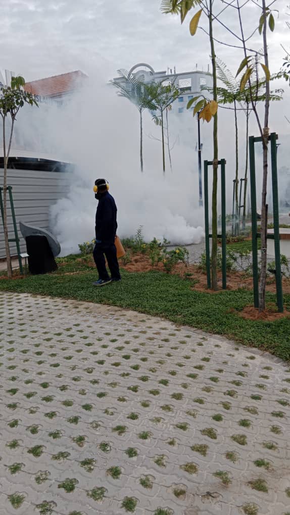 Bagi memastikan keberkesanan aktiviti kawalan vektor, dua (2) pasukan dengan dua (2) unit mesin thermal fogger telah digerakkan untuk melaksanakan operasi semburan kabus di kawasan sekitar program. Langkah ini bertujuan membunuh nyamuk dewasa serta mencegah penularan penyakit bawaan vektor dalam kalangan peserta dan pengunjung majlis tersebut.