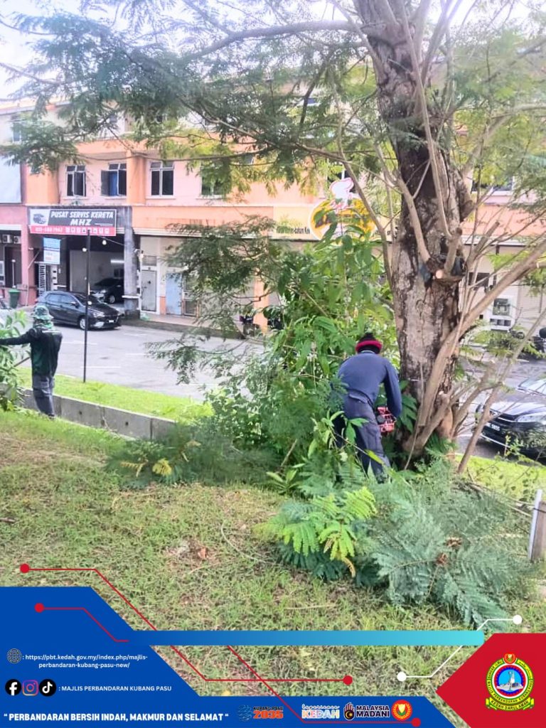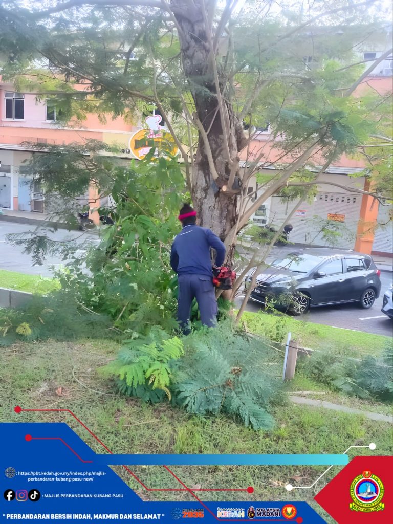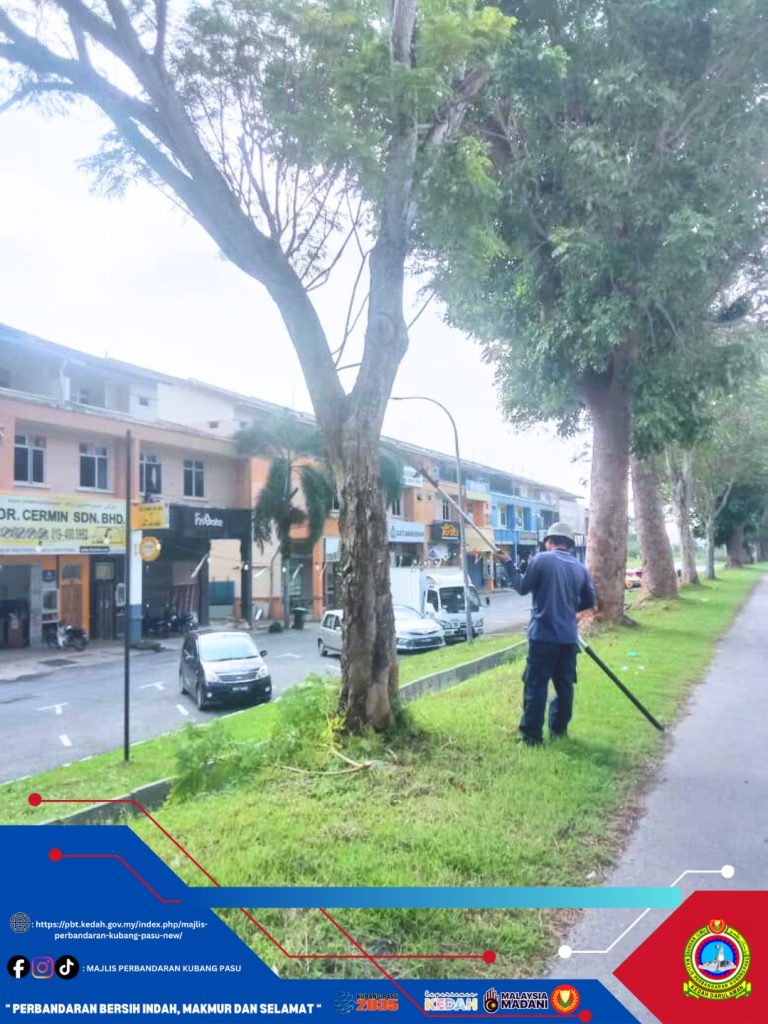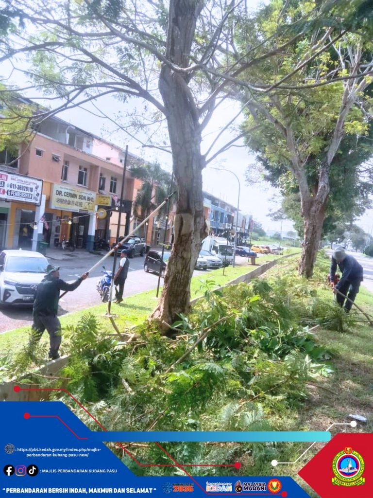 Jitra, 17 November 2025 (Isnin) — Jabatan Landskap Majlis Perbandaran Kubang Pasu (MPKP) hari ini melaksanakan kerja-kerja rutin penyelenggaraan pokok di sepanjang Jalan Jitra–Kepala Batas berhampiran kawasan Jenan. Tindakan ini merupakan sebahagian daripada Kerja-kerja rutin penyelenggaraan berkala bagi memastikan keselamatan pengguna jalan raya serta mengekalkan landskap bandar yang teratur dan terjaga.