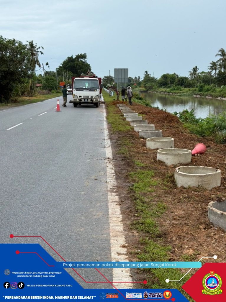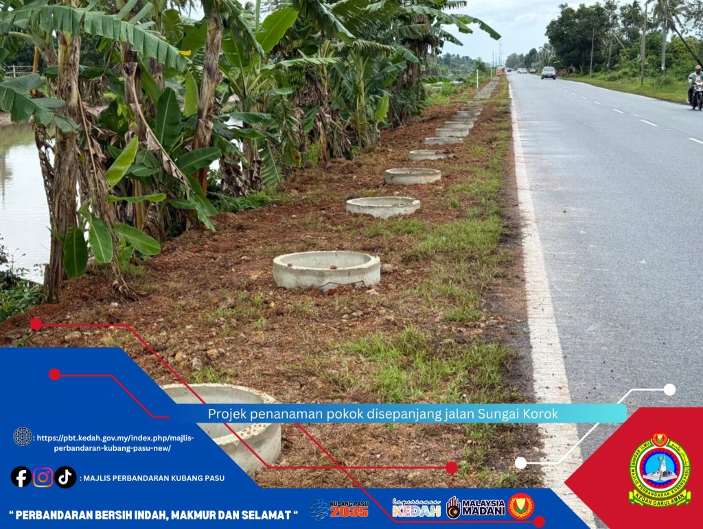 Projek penanaman pokok di sepanjang Jalan Sungai Korok (K2) yang dikendalikan oleh Majlis Perbandaran Kubang Pasu (MPKP) kini giat dilaksanakan oleh kontraktor yang dilantik. Inisiatif penghijauan ini bertujuan bukan sahaja untuk mencantikkan pemandangan di sepanjang laluan utama tersebut, tetapi yang lebih penting, ia merupakan langkah kritikal dalam usaha memelihara tebing Sungai Korok.