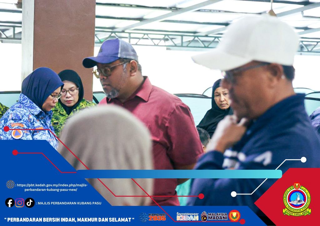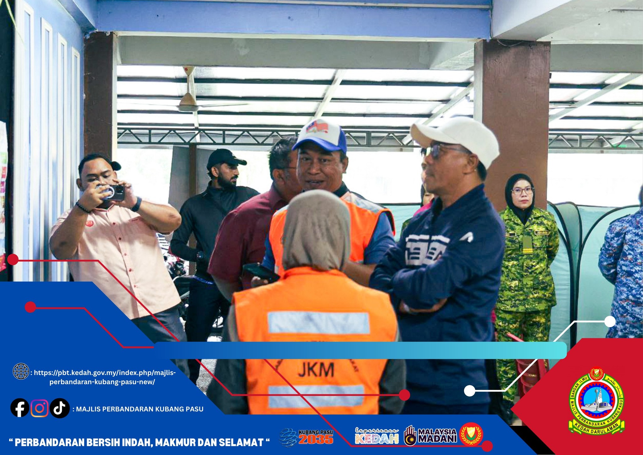 CHANGLUN, — Pegawai Daerah Kubang Pasu yang juga merangkap Yang Dipertua Majlis Perbandaran Kubang Pasu (MPKP) hari ini mengadakan lawatan kerja ke dua Pusat Pemindahan Sementara (PPS) di Changlun, iaitu Dewan Lembah Keriang dan Sekolah Menengah Kebangsaan (SMK) Changlun, bagi meninjau kebajikan mangsa banjir yang ditempatkan di kedua-dua lokasi tersebut.