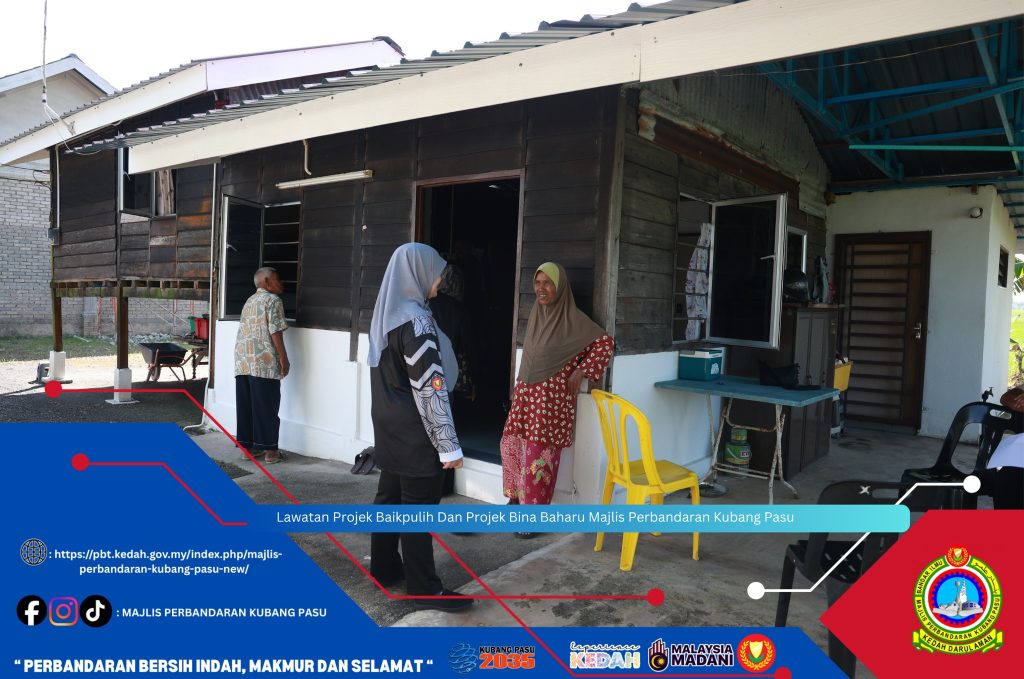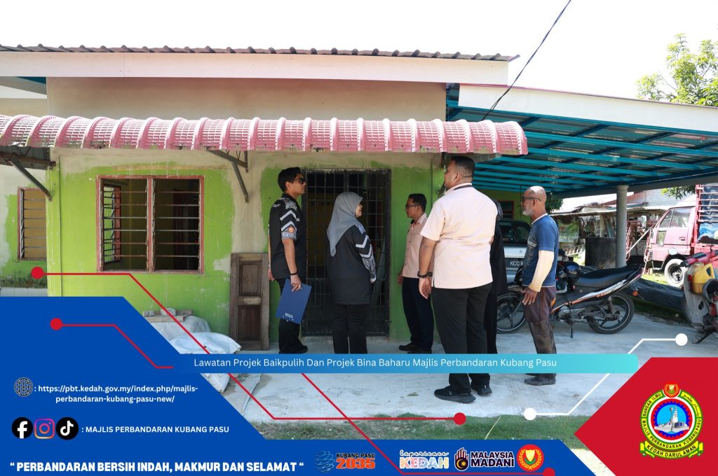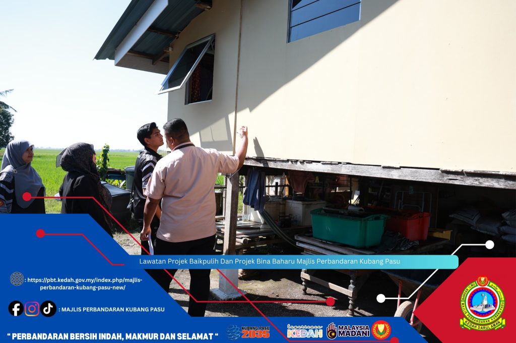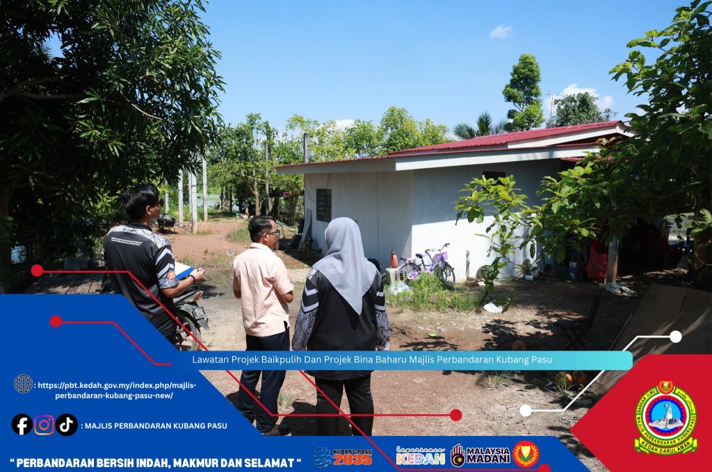 Kubang Pasu, 30 November 2025 (Ahad) – Majlis Perbandaran Kubang Pasu (MPKP) telah mengadakan Lawatan Projek Baikpulih Dan Projek Bina Baharu sebagai inisiatif berterusan untuk memastikan kualiti hidup penduduk tempatan, khususnya golongan yang memerlukan. Pegawai dari MPKP membuat tinjauan ke beberapa lokasi projek, meneliti kemajuan kerja-kerja pembinaan rumah baharu dan pembaikan rumah sedia ada.
