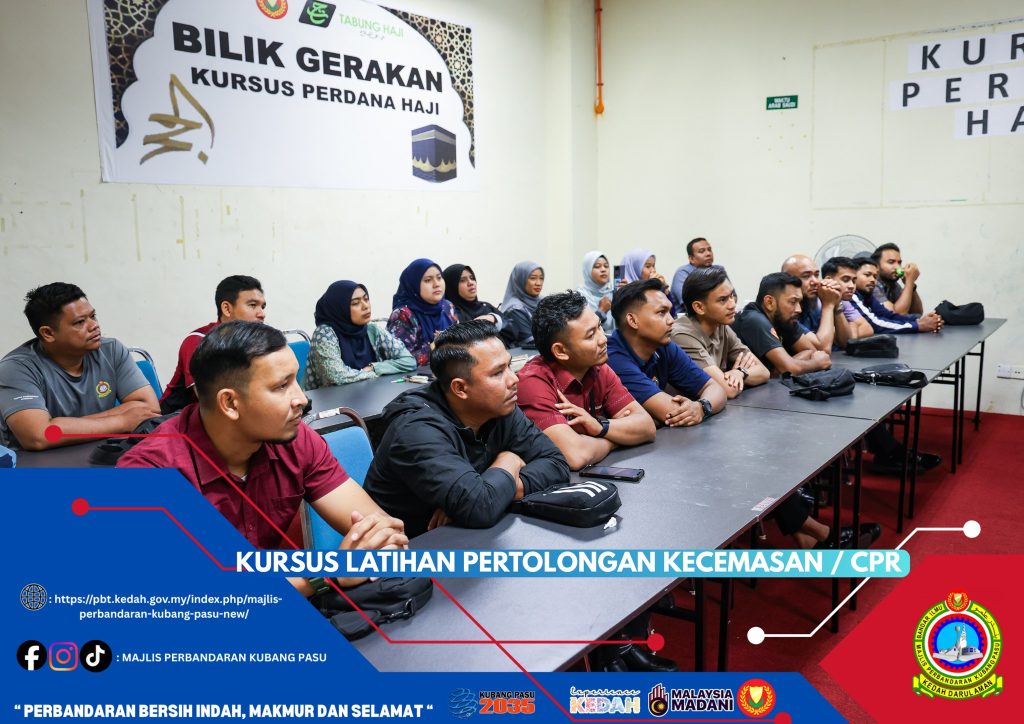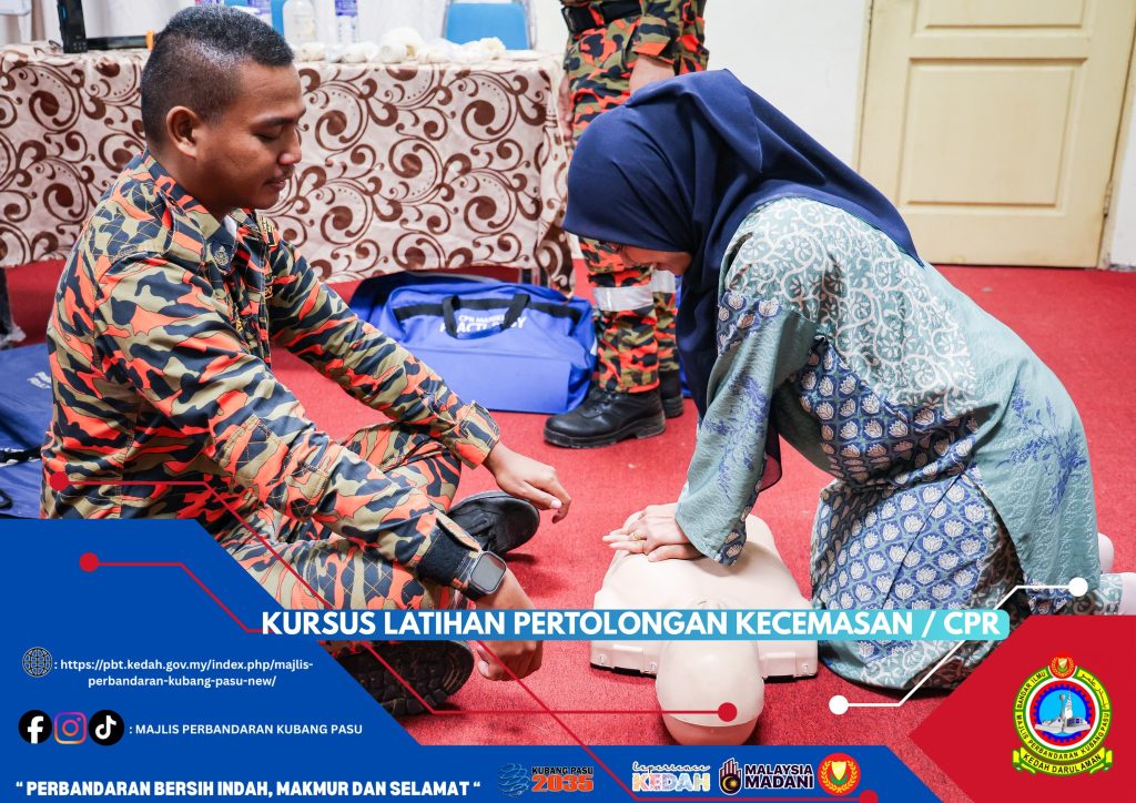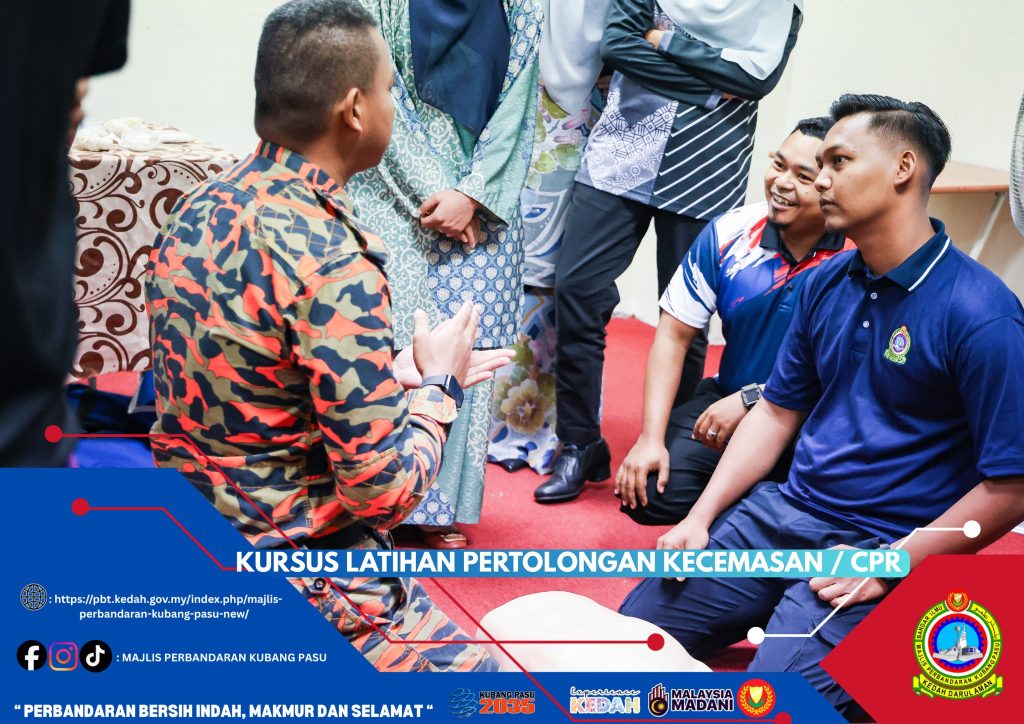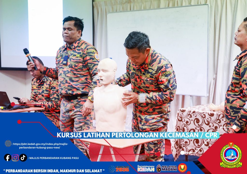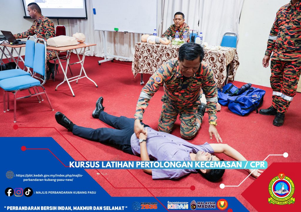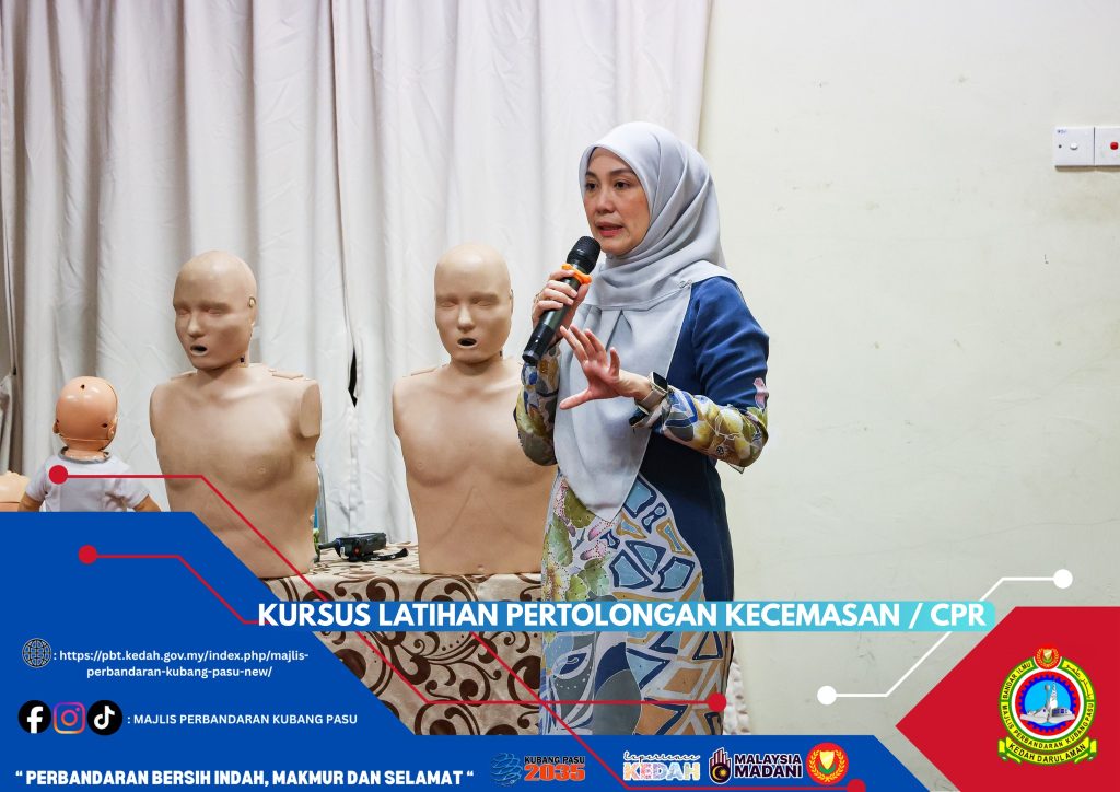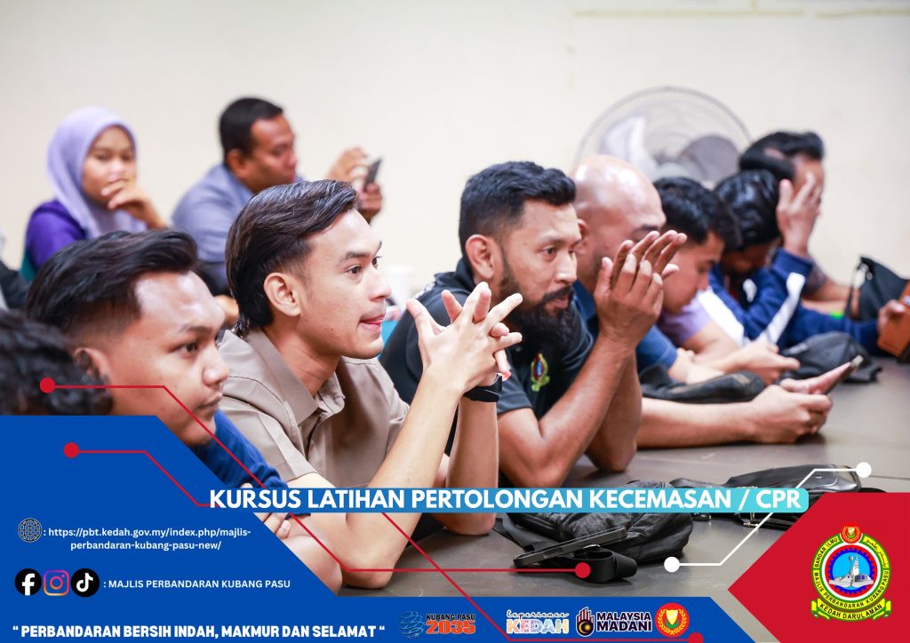 Majlis Perbandaran Kubang Pasu (MPKP) telah mengambil inisiatif proaktif dengan menganjurkan Kursus Latihan Pertolongan Kecemasan dan CPR (Cardiopulmonary Resuscitation) bagi semua kakitangan. Kursus ini bertujuan untuk melengkapkan warga kerja dengan pengetahuan dan kemahiran asas pertolongan cemas yang penting, membolehkan mereka bertindak pantas dan berkesan dalam menyelamatkan nyawa ketika berlakunya situasi kecemasan perubatan. Dijalankan dengan kerjasama tenaga pengajar yang mahir, kemungkinan besar dari Jabatan Bomba dan Penyelamat Malaysia (berdasarkan pakaian seragam mereka), kursus ini merangkumi sesi teori dan praktikal, termasuk teknik pernafasan bantuan mulut ke mulut dan teknik tekanan dada yang betul menggunakan patung manikin dewasa dan bayi.