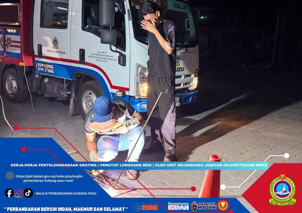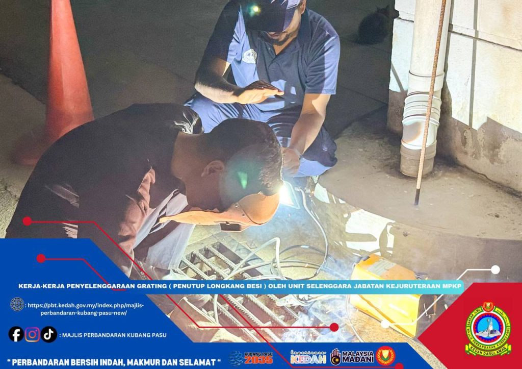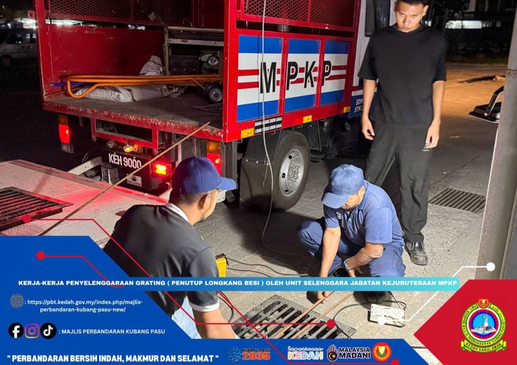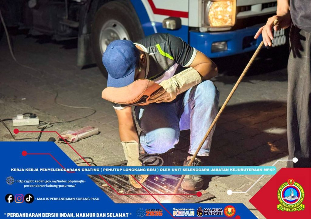 Majlis Perbandaran Kubang Pasu (MPKP) meneruskan komitmen terhadap penyelenggaraan infrastruktur bandar melalui kerja-kerja pembaikan dan penggantian grating atau penutup longkang besi di sekitar kawasan operasi.