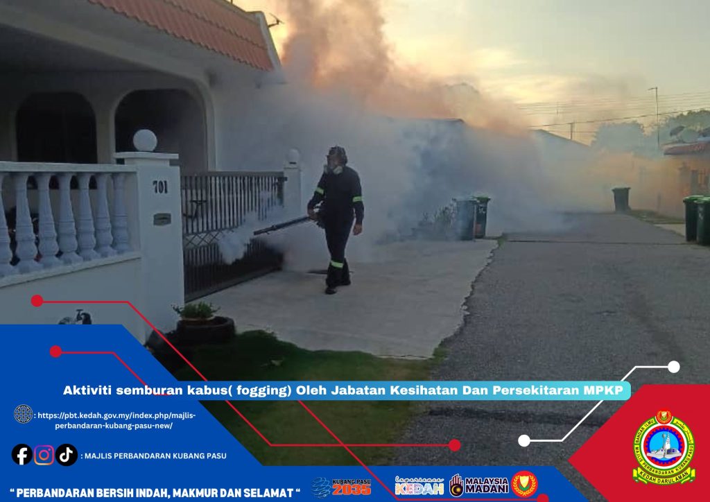 KUBANG PASU, 11 Disember 2025 – Jabatan Kesihatan dan Persekitaran Majlis Perbandaran Kubang Pasu (MPKP) telah bertindak segera melaksanakan aktiviti semburan kabus (fogging) secara meluas di kawasan Taman Mahsuri Fasa 2C, susulan laporan peningkatan kes demam denggi. Tindakan pantas ini diambil setelah pihak majlis mengesahkan penerimaan satu (1) kes demam denggi di zon perumahan tersebut. Langkah pencegahan ini bertujuan untuk memutuskan rantaian penularan penyakit bawaan nyamuk Aedes dengan menghapuskan nyamuk dewasa, sekali gus mengawal wabak daripada merebak ke kawasan kejiranan yang lain.