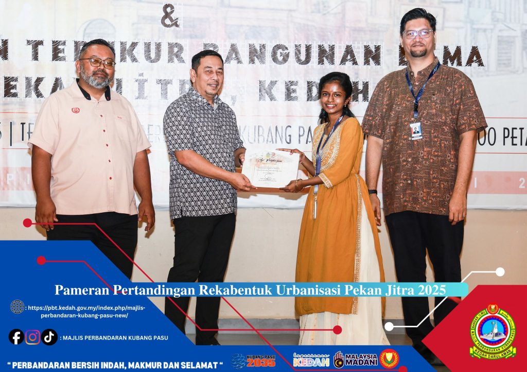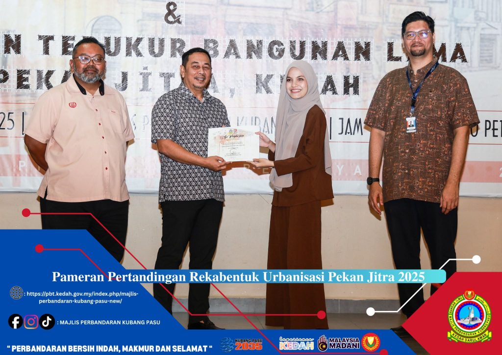 JITRA, 11 Disember – Program Pameran dan Pertandingan Rekabentuk Urbanisasi serta Lukisan Terukur Bangunan Lama Pekan Jitra telah berlangsung dengan jayanya selama dua hari bermula 10 Disember 2025. Hari pertama program menyaksikan sesi pembentangan yang penuh kompetitif di mana para peserta mempamerkan hasil kreativiti dan inovasi masing-masing dalam memelihara serta membangunkan semula warisan seni bina tempatan. Kehadiran para juri dan pelawat di tapak pameran memeriahkan lagi suasana, memperlihatkan komitmen tinggi daripada penganjur bersama iaitu Majlis Perbandaran Kubang Pasu (MPKP) dan Politeknik Sultan Abdul Halim Mu’adzam Shah (POLIMAS).