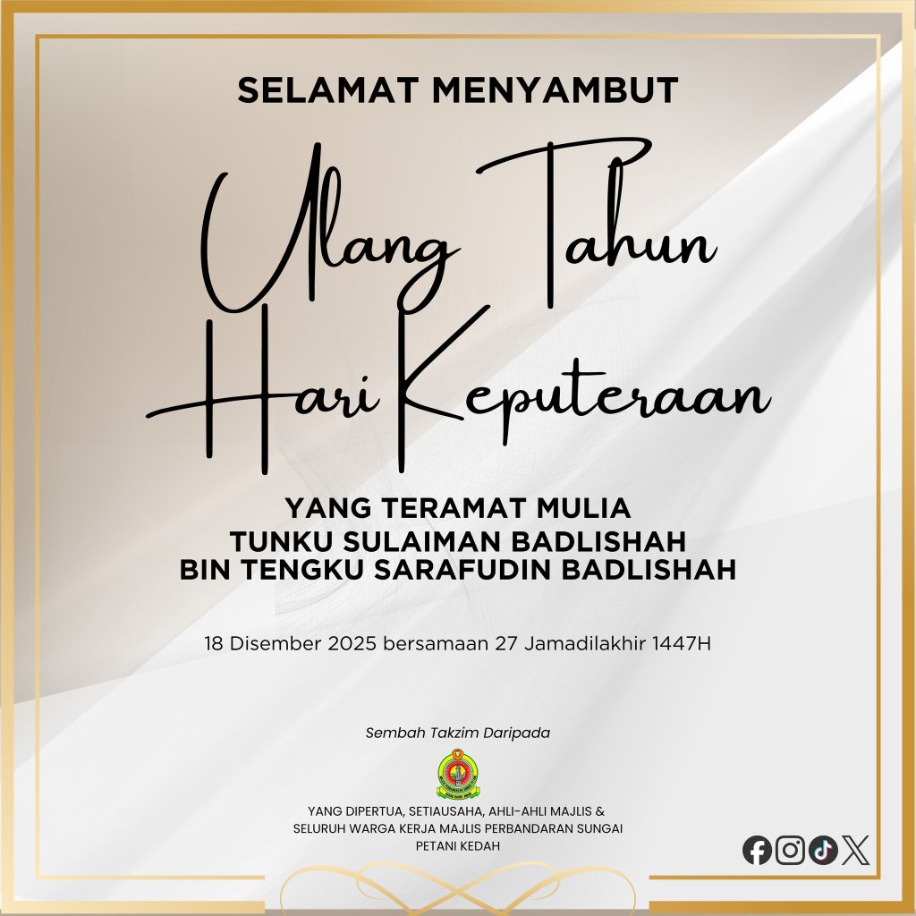 Majlis Perbandaran Sungai Petani Kedah (MPSPK) dengan penuh takzim merakamkan ucapan Selamat Menyambut Ulang Tahun Hari Keputeraan kepada Yang Teramat Mulia Tunku Sulaiman Badlishah bin Tengku Sarafudin Badlishah.