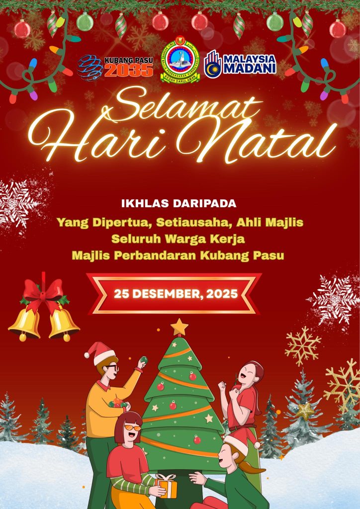 Segenap warga kerja Majlis Perbandaran Kubang Pasu ingin mengucapkan Selamat Hari Natal kepada seluruh masyarakat yang menyambutnya, khususnya di daerah Kubang Pasu.