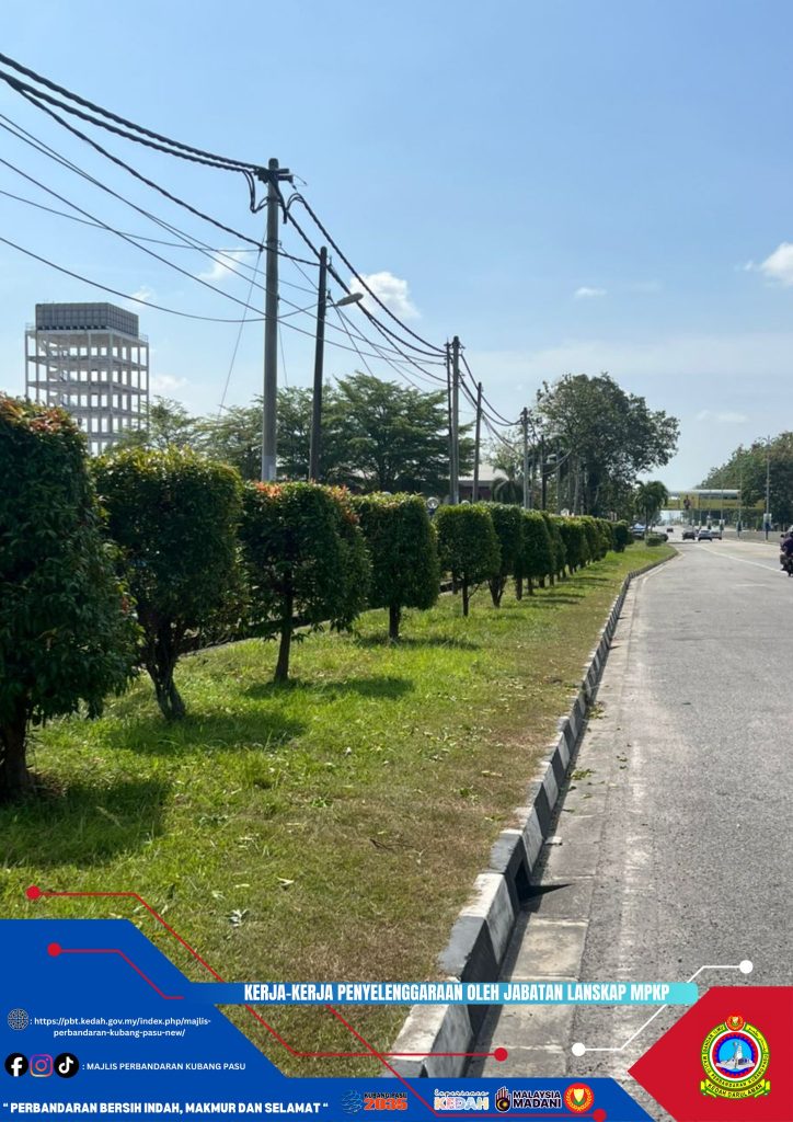 Jabatan Landskap Majlis Perbandaran Kubang Pasu (MPKP) terus komited dalam memastikan keindahan dan keceriaan kawasan persekitaran bandar sentiasa terjaga melalui kerja-kerja penyelenggaraan yang berkala. Berdasarkan tinjauan baru-baru ini, kakitangan MPKP sedang giat menjalankan aktiviti pemangkasan pokok hiasan serta pembersihan kawasan pembahagi jalan dan bahu jalan di sekitar kawasan pentadbiran. Usaha ini bukan sahaja bertujuan untuk mengekalkan nilai estetika bandar, malah penting bagi memastikan keselamatan pengguna jalan raya terjamin dengan memastikan pandangan tidak terhalang oleh dahan atau semak yang tidak terurus.