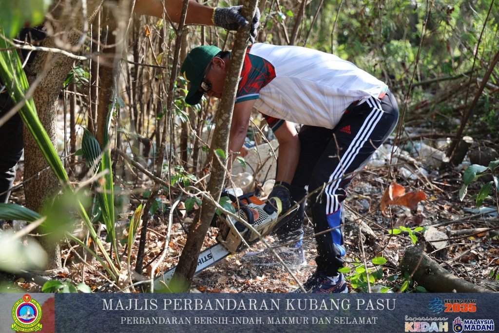 Berdasarkan tinjauan di lokasi, kerja-kerja pembersihan dilakukan secara intensif merangkumi pemotongan rumput yang panjang, penebangan dahan pokok yang menghalang laluan, serta kutipan sampah sarap di kawasan semak. Penggunaan peralatan berat dan mesin seperti gergaji berantai (chainsaw) serta mesin rumput membantu mempercepatkan proses pembersihan kawasan yang sebelum ini terbiar. Sisa-sisa dahan dan sampah dikumpulkan ke dalam lori untuk pelupusan yang lebih sistematik.