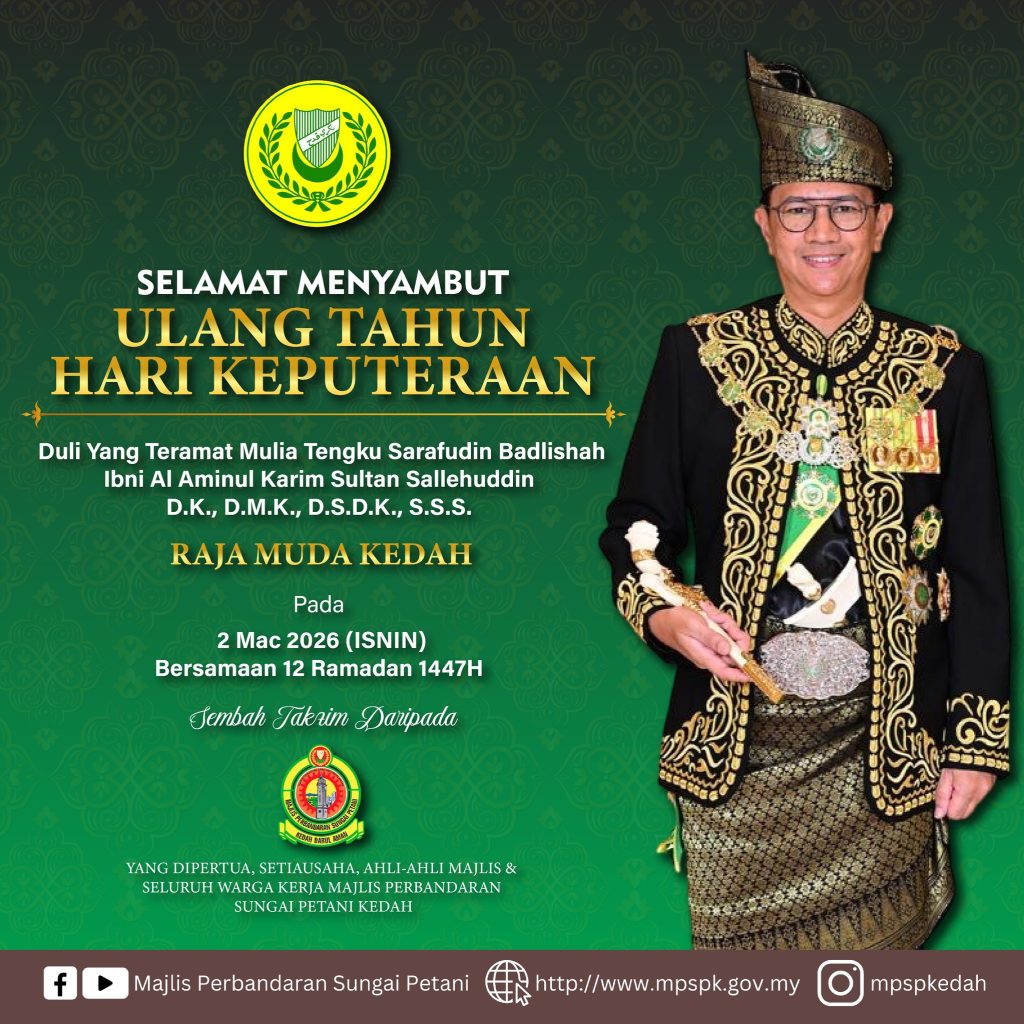 Sembah Takzim daripada Yang Dipertua, Setiausaha & Seluruh Warga Kerja Majlis Perbandaran Sungai Petani Kedah.