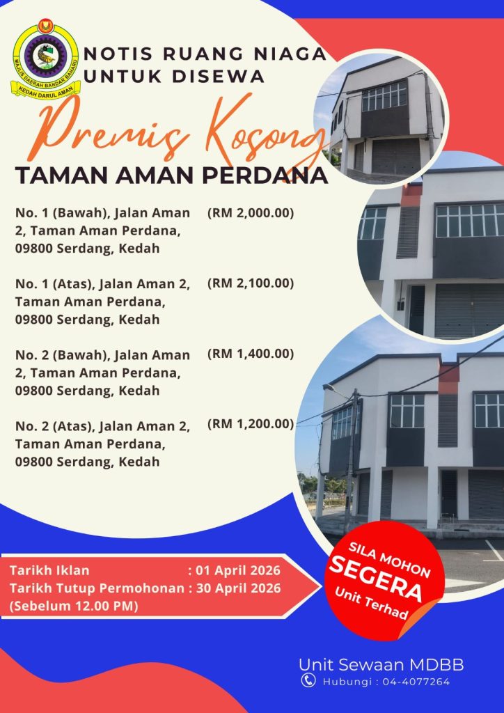 NOTIS RUANG NIAGA MDBB UNTUK DISEWA