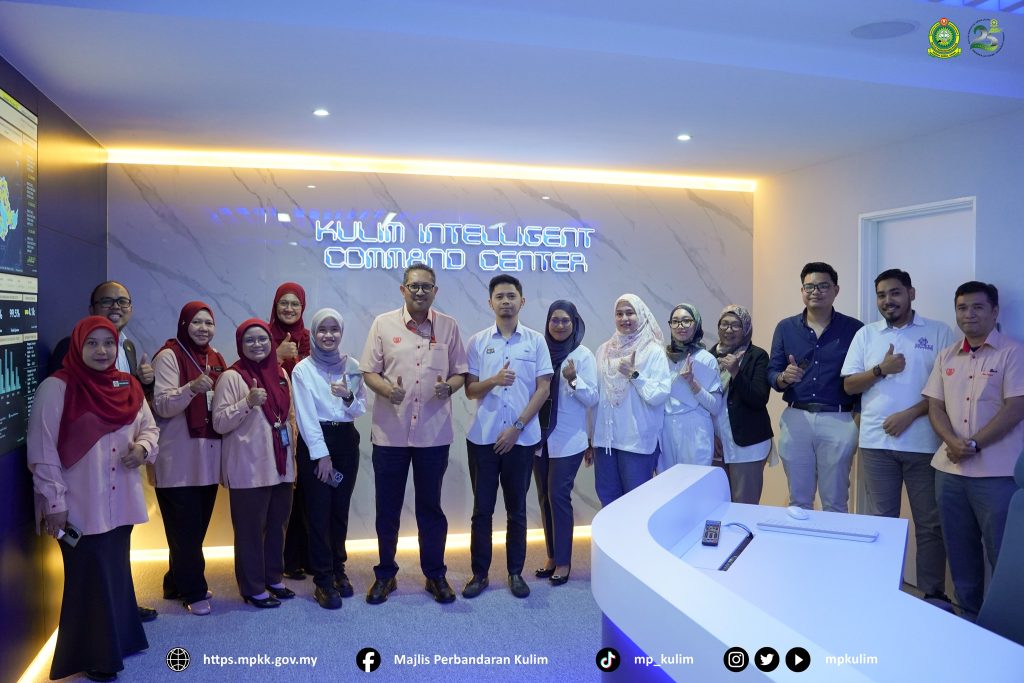 Delegasi SM-WEZ Corporation diberikan taklimat berkaitan fungsi dan peranan Kulim Intelligent Command Centre (KICC), merangkumi aspek pemantauan bandar secara pintar serta integrasi sistem digital bagi meningkatkan kecekapan pengurusan dan penyampaian perkhidmatan bandar oleh Puan Uzwana binti Mahmud, Penolong Pengarah Kanan, Jabatan Perancangan dan Landskap, MPKK.