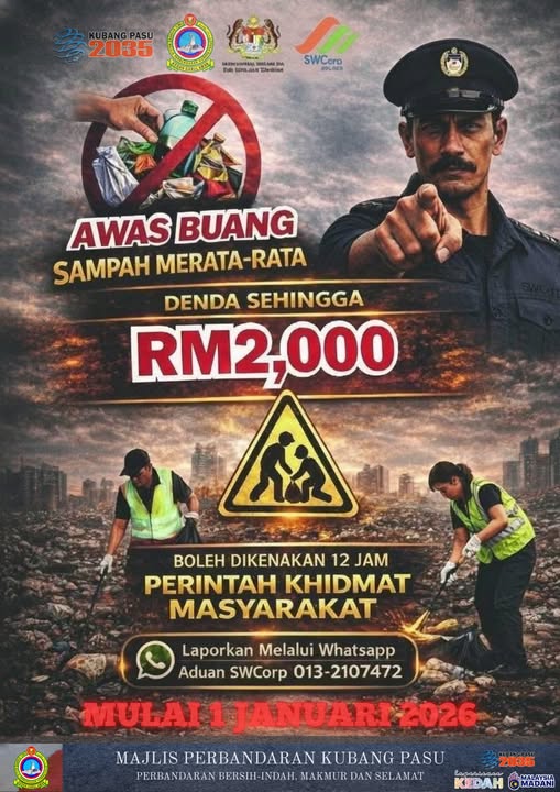 AMARAN!!! PERINTAH KHIDMAT MASYARAKAT BERKAITAN BUANG SAMPAH MERATA-RATA