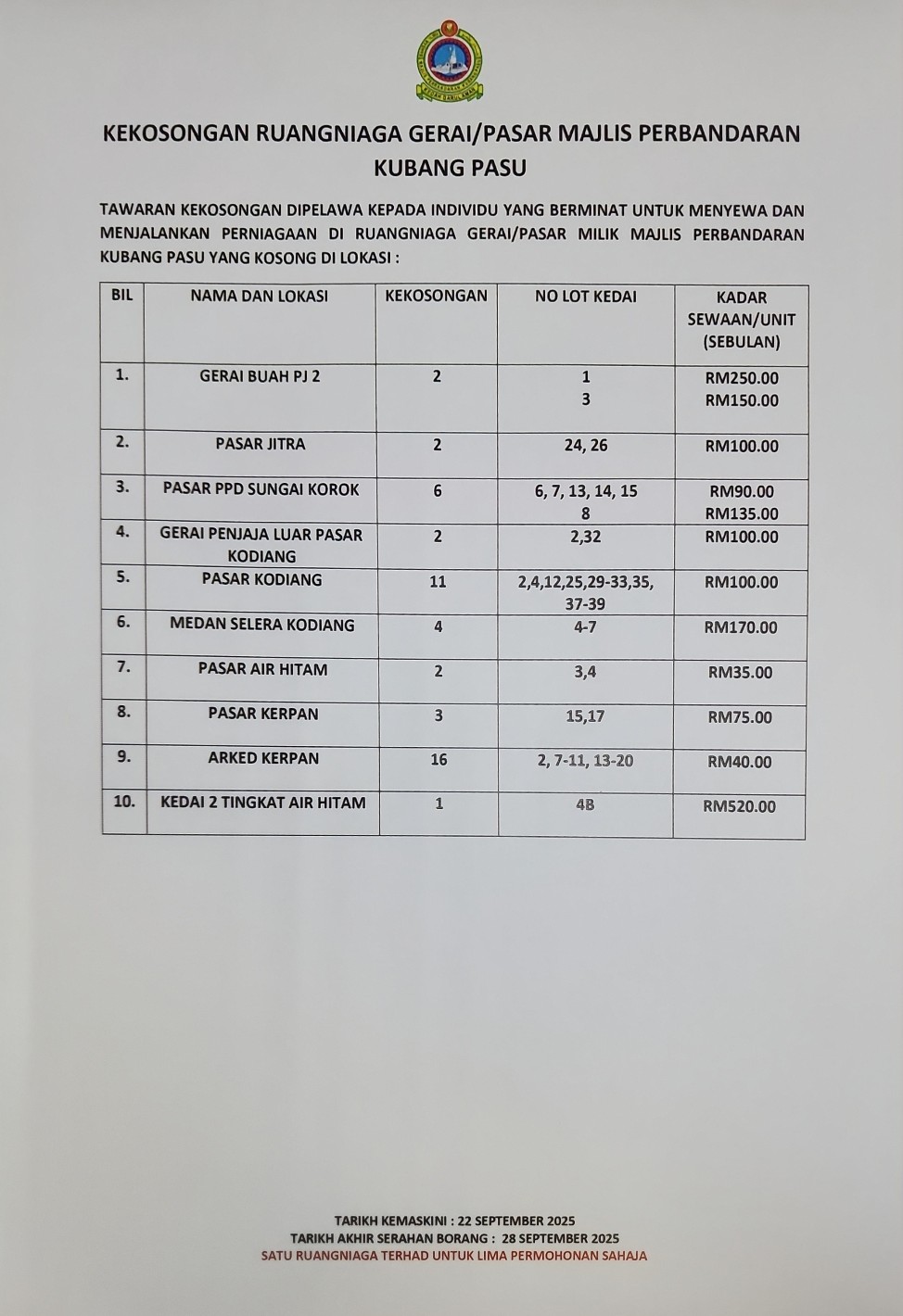 Tarikh akhir serahan borang : 28 SEPTEMBER 2025